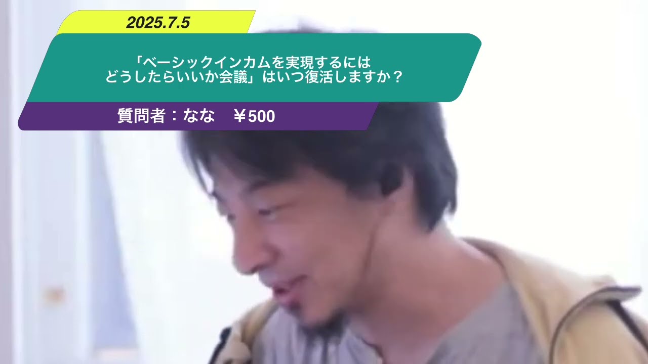 すいません。「ベーシックインカムを実現するにはどうしたらいいか会議」はいつ復活しますか?楽しみにしてます。