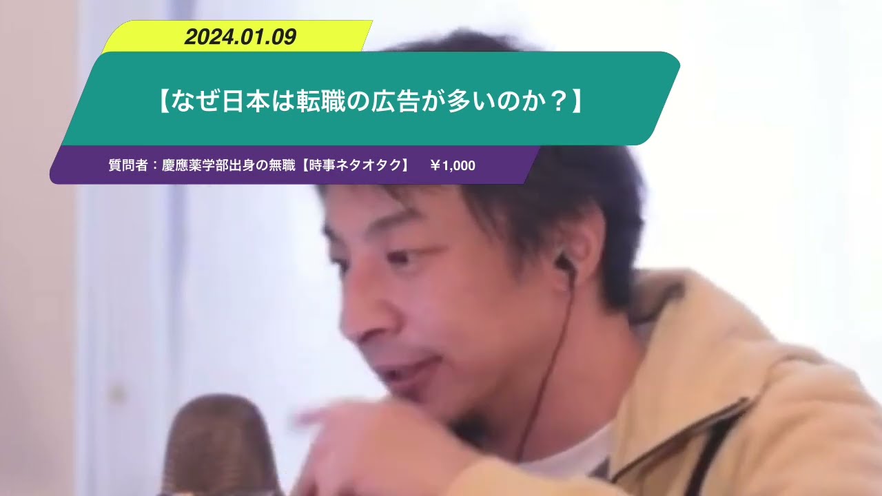 【なぜ日本は転職の広告が多いのか?】僕は慶應薬学部出身の無職ですが,YouTubeを開いてもTVを見ても,駅を歩いて電車に乗っても転職の広告が視界に入ってウザいです。なぜ日本は転職会社や派遣会社が大量にあるのでしょうか?その分の人員を人手不足の現場に回せば良いのに。