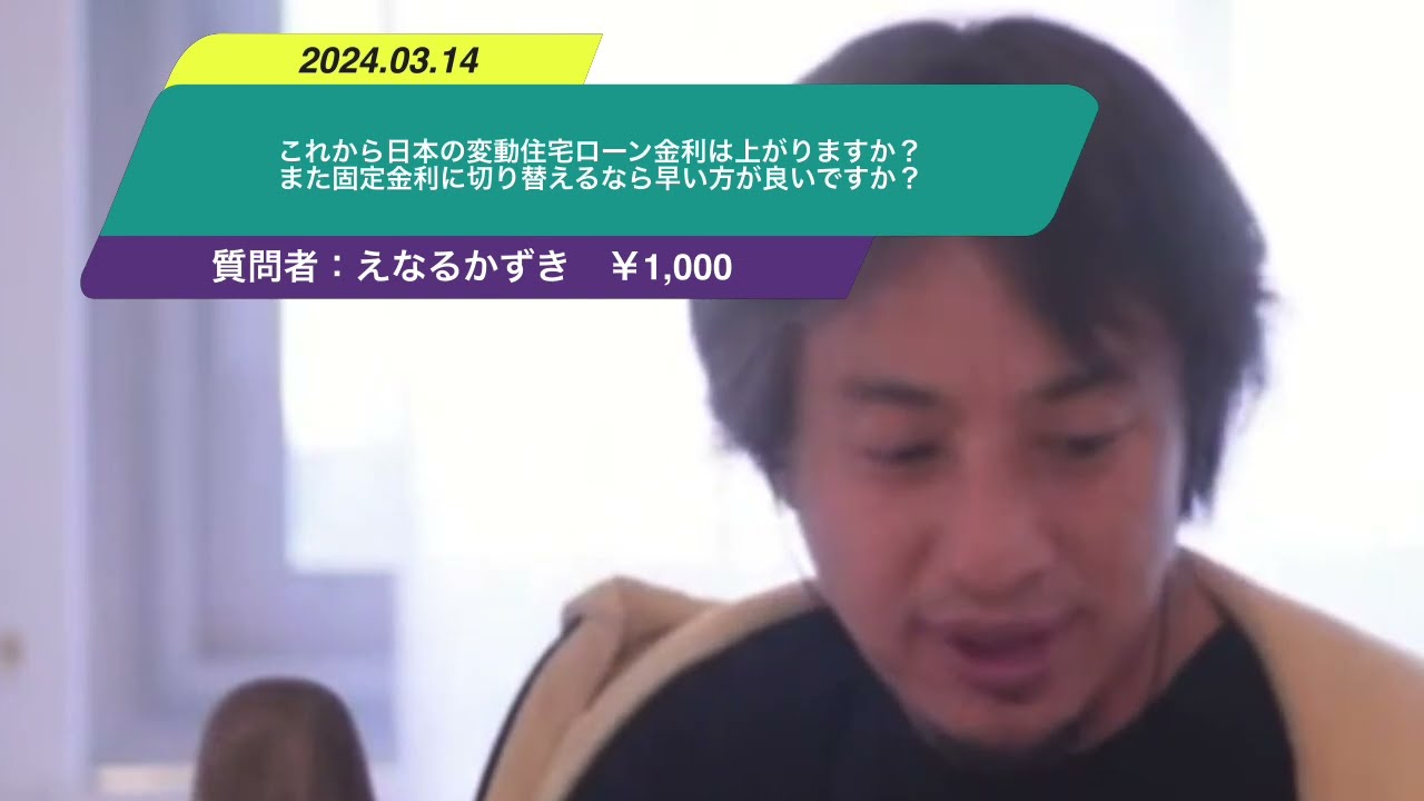 Kind: captionsLanguage: jaえこれから日本の変動住宅論金がありますかまた固定金利聞かのは早い方がいいですかえっと一応なんかあの経済筋の人たちはあの3月中に日本銀行が金利を上げるんじゃないかという風に考えてるらしくて今1ドル148なんですよねなんか3月20日とかなんかそれぐらいにあの日銀がなんか解合があるらしくてそろそろマイナス金利やめた方がいいんちゃねみたいな話になるのでマイナス金利がまなくなるイコール金利が上がるっていうのを徐々に日本はめ可能性はあるんじゃじゃないかなと思いますけども
