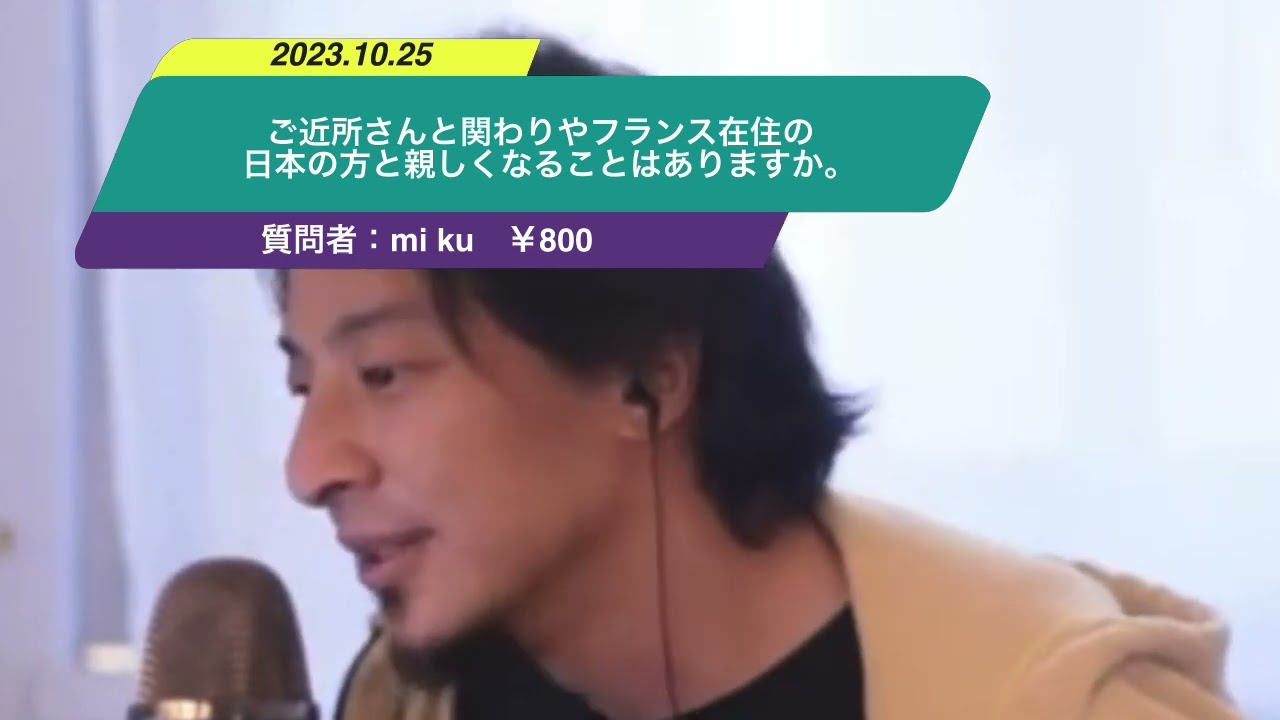 Kind: captionsLanguage: jaご近所さんとの関わりやフランス上の日本人の方としくしくなることはありますかいやまあ一応あるんですよねだから今年の夏に知り合いがの大家さんが亡くなってしまってちょっと残念な感じだったりするんですけどあとま日本人の人でもちょこちょこお話する人いるんですけど基本的に僕でも外出ないんでねはい