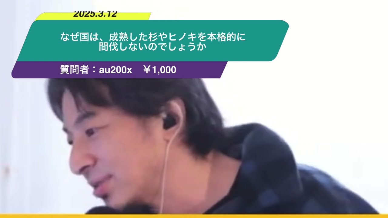 なぜ国は、成熟した杉やヒノキを本格的に間伐しないのでしょうか。花粉症で悩む人は大勢いて、医療費増大を少なからず招き社会的損失も大きく儲かるのはせいぜい一部の医者だけ。賛否両論ある数多くの花粉症対策を個々が行うよりも根本解決した方が確実で、国が対策するメリットは高いと思うのですが。あと関係ないですが「ジュンちゃん3歳のお誕生日おめでとう!」をお願いします。