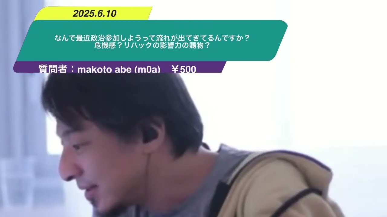 なんで最近政治参加しようって流れが出てきてるんですか?危機感?リハックの影響力の賜物?