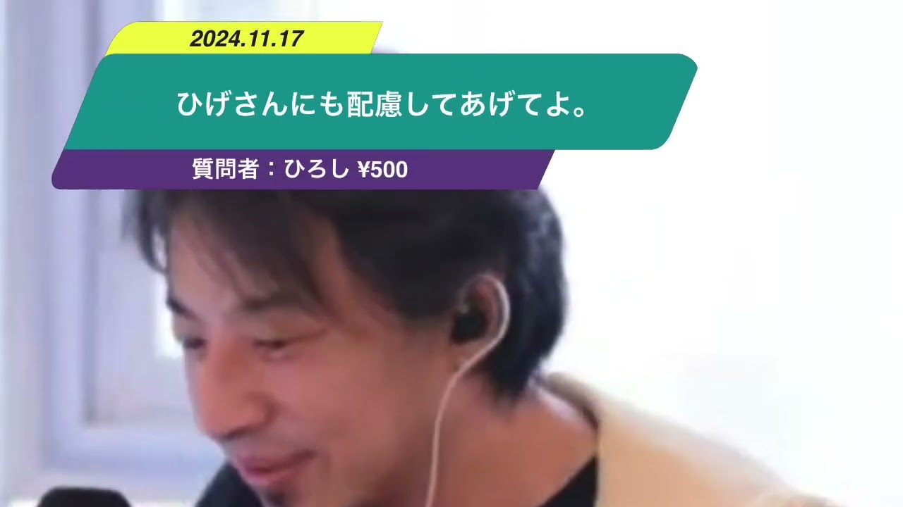 【ひろゆき】ひげさんにも配慮してあげてよ。ー ひろゆき切り抜き 20241117