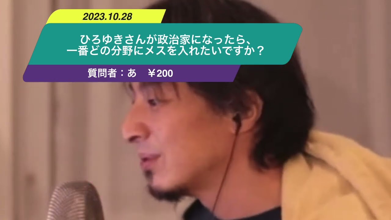 【ひろゆき】ひろゆきさんが政治家になったら、一番どの分野にメスを入れたいですか?ー ひろゆき切り抜き 20231028