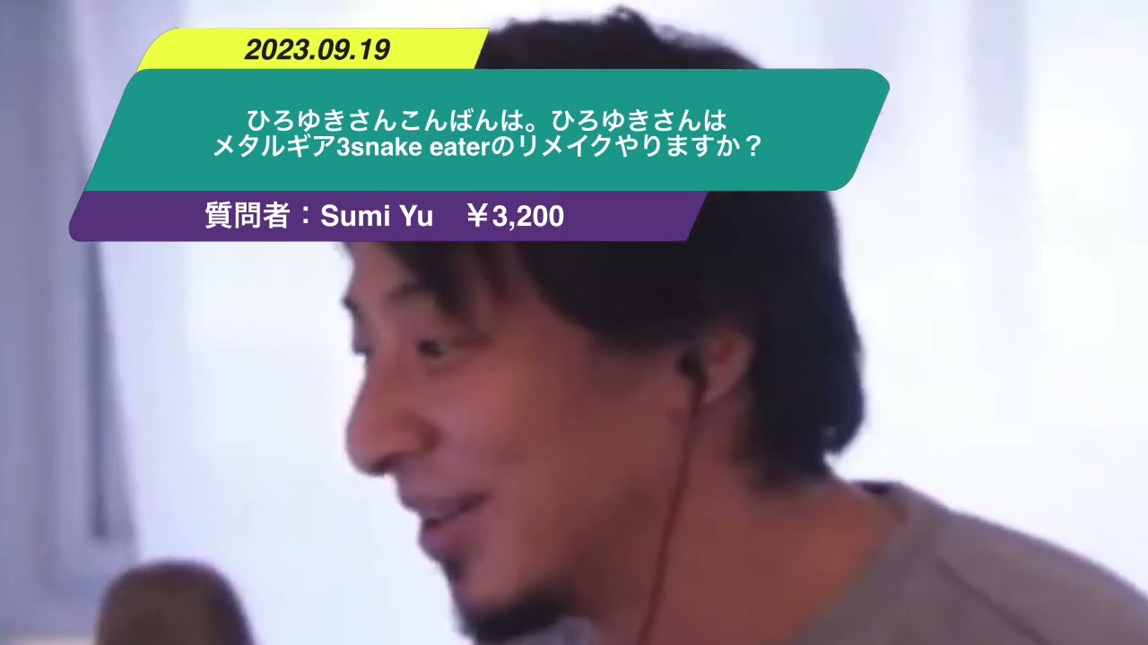 ひろゆきさんこんばんは。ひろゆきさんはメタルギア3snake eaterのリメイクやりますか?