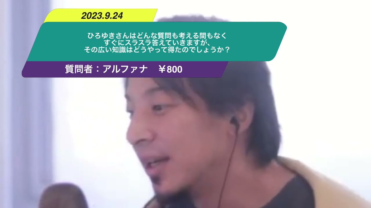 ひろゆきさんはどんな質問も考える間もなくすぐにスラスラ答えていきますが、その広い知識はどうやって得たのでしょうか?どうすれば同じように職場や飲み会でどんな質問にも返せるような下位互換ひろゆきになれますか?読書の数でしょうか?