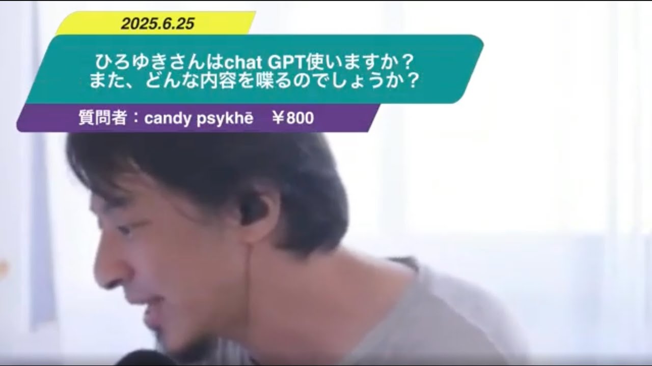 【ひろゆき】ひろゆきさんはchat GPT使いますか?また、どんな内容を喋るのでしょうか?ー ひろゆき切り抜き 20250625