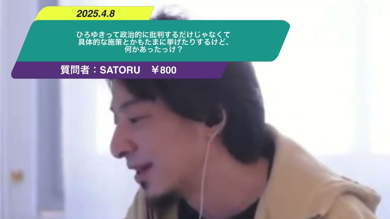 ひろゆきって政治的に批判するだけじゃなくて具体的な施策とかもたまに挙げたりするけど今まで挙げてきたのって「結婚したら1000万支給しろ」と、あと何かあったっけ。基本的には積極財政派なイメージだけど。