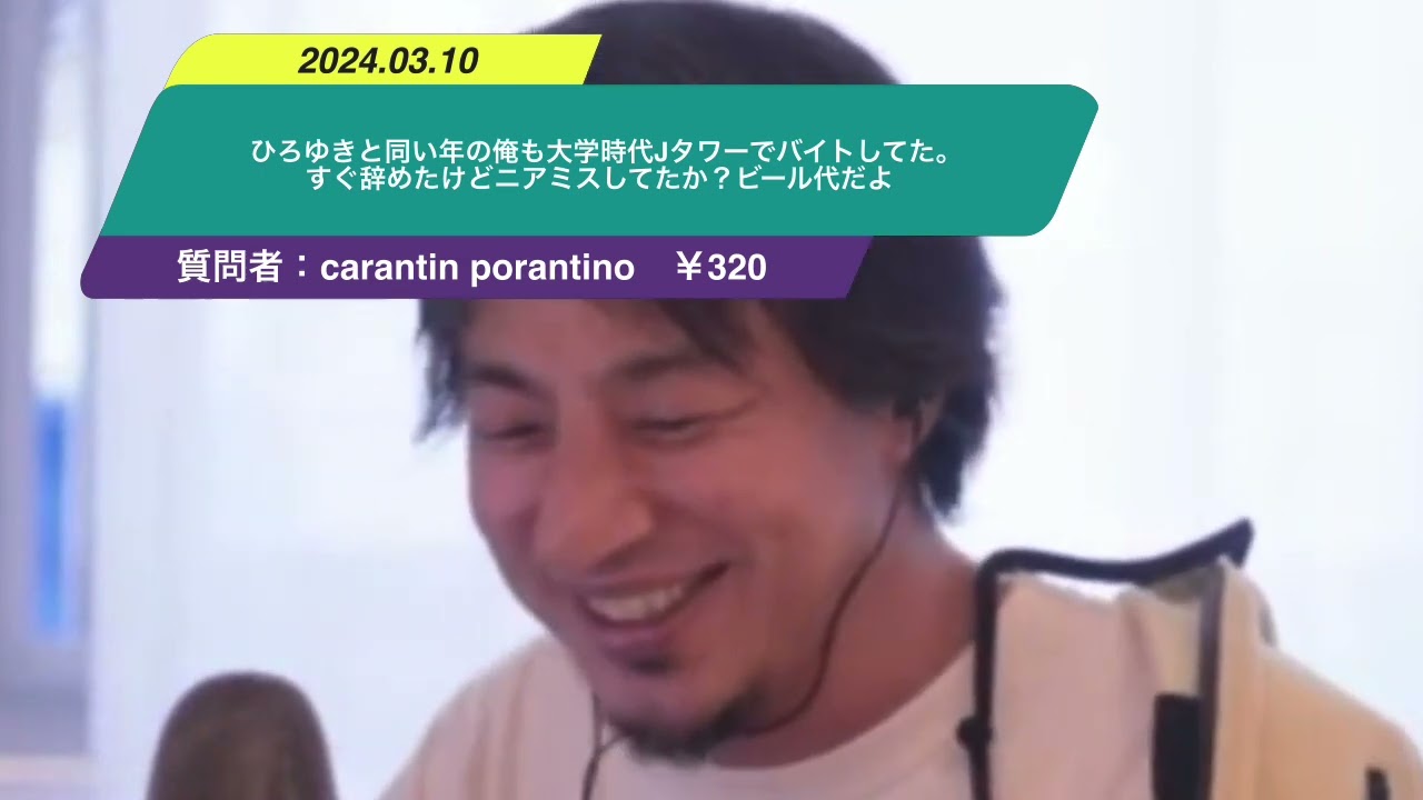 ひろゆきと同い年の俺も大学時代Jタワーでバイトしてた。すぐ辞めたけどニアミスしてたか?ビール代だよ