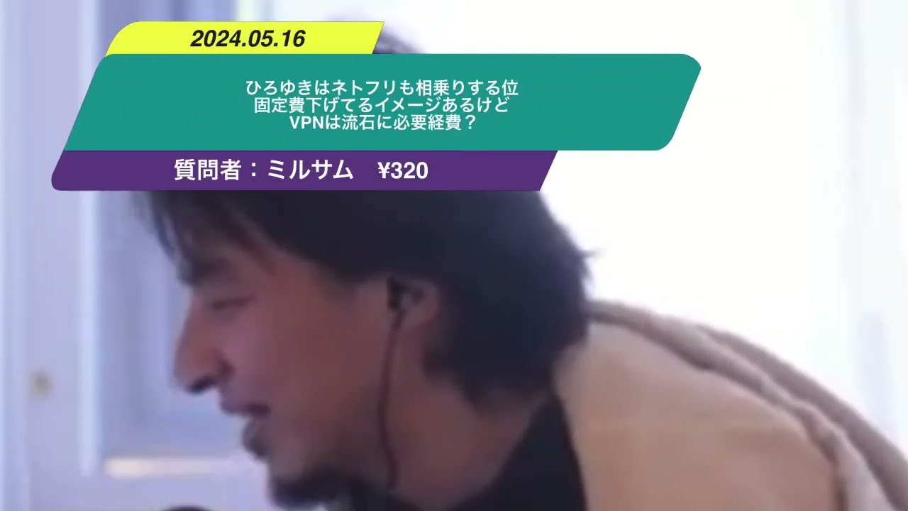 ひろゆきはネトフリも相乗りする位固定費下げてるイメージあるけどVPNは流石に必要経費?