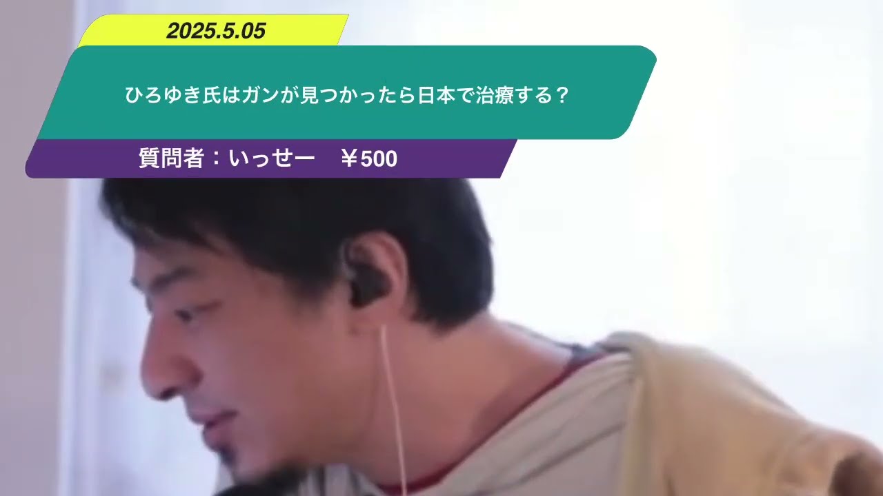 ひろゆき氏はガンが見つかったら日本で治療する?ガンが見つかったけど3年で完解したよ.後発薬無くて薬価高すぎたから10割負担なら1,000万円だけど高額療養費制度のおかげで3年で100万円も払ってないよ.900万円税金使ったけどまだ37歳,妻子持ちだから許してね.