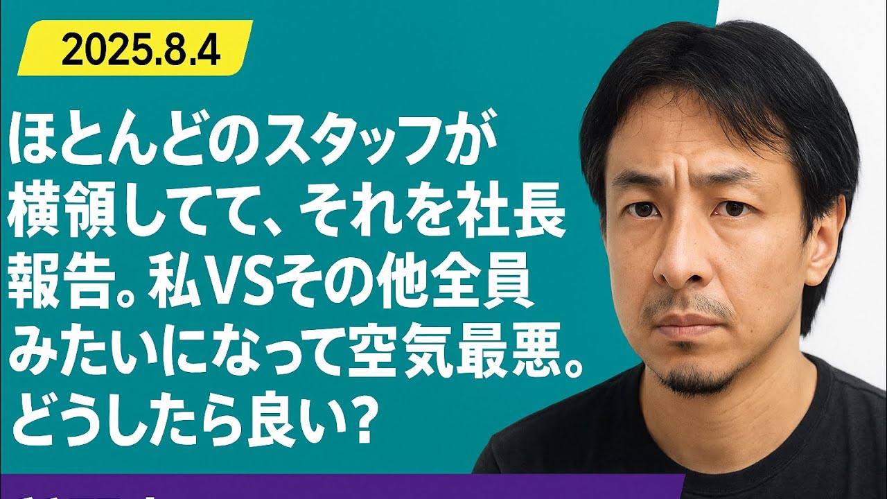 【ひろゆき】ほとんどのスタッフが横領してて、それを社長に報告。 私VSその他全員みたいになって空気最悪。どうしたら良い?ー ひろゆき切り抜き 20250804