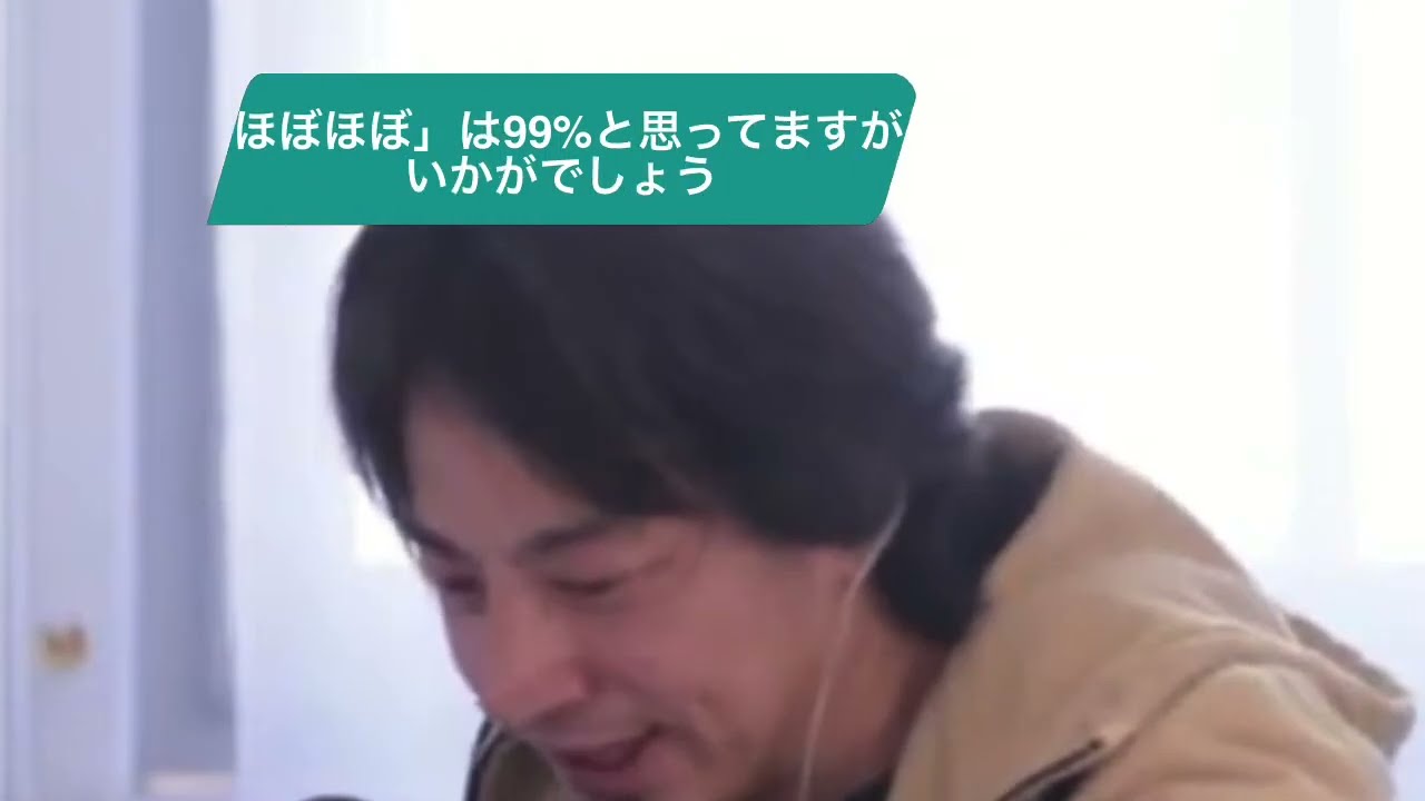 ひろゆきさんこんばんは。ほとんど、ということを「ほぼ」といいますが、最近は「ほぼほぼ」ということがあります。私の解釈は、「ほぼ」は90%、つまり0.9で、小数第一位。そのとなりにもう一回、ほぼがあるからそれは小数第二位、だから「ほぼほぼ」は99%と思ってますがいかがでしょう。