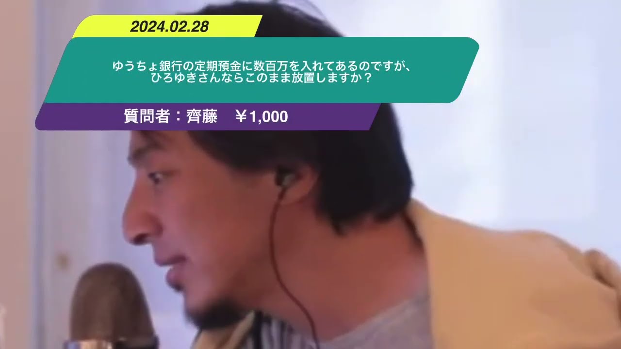 ゆうちょ銀行の定期預金に数百万を入れてあるのですが、ひろゆきさんならこのまま放置しますか?