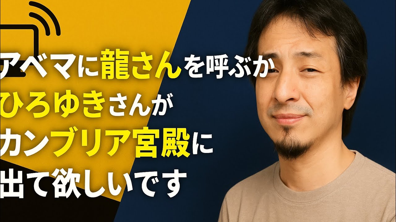 以前アベマで、「手書きは必要か否か」議論した作家の阿刀田高さんを覚えていますか?滅多に映像メディアに出ない人なんで嬉しかったです。あと、村上龍さんも好きなんですが、コラボの機会ないですか?ひろゆきさんと主張が近いと思います。アベマに龍さんを呼ぶかひろゆきさんがカンブリア宮殿に出て欲しいです。
