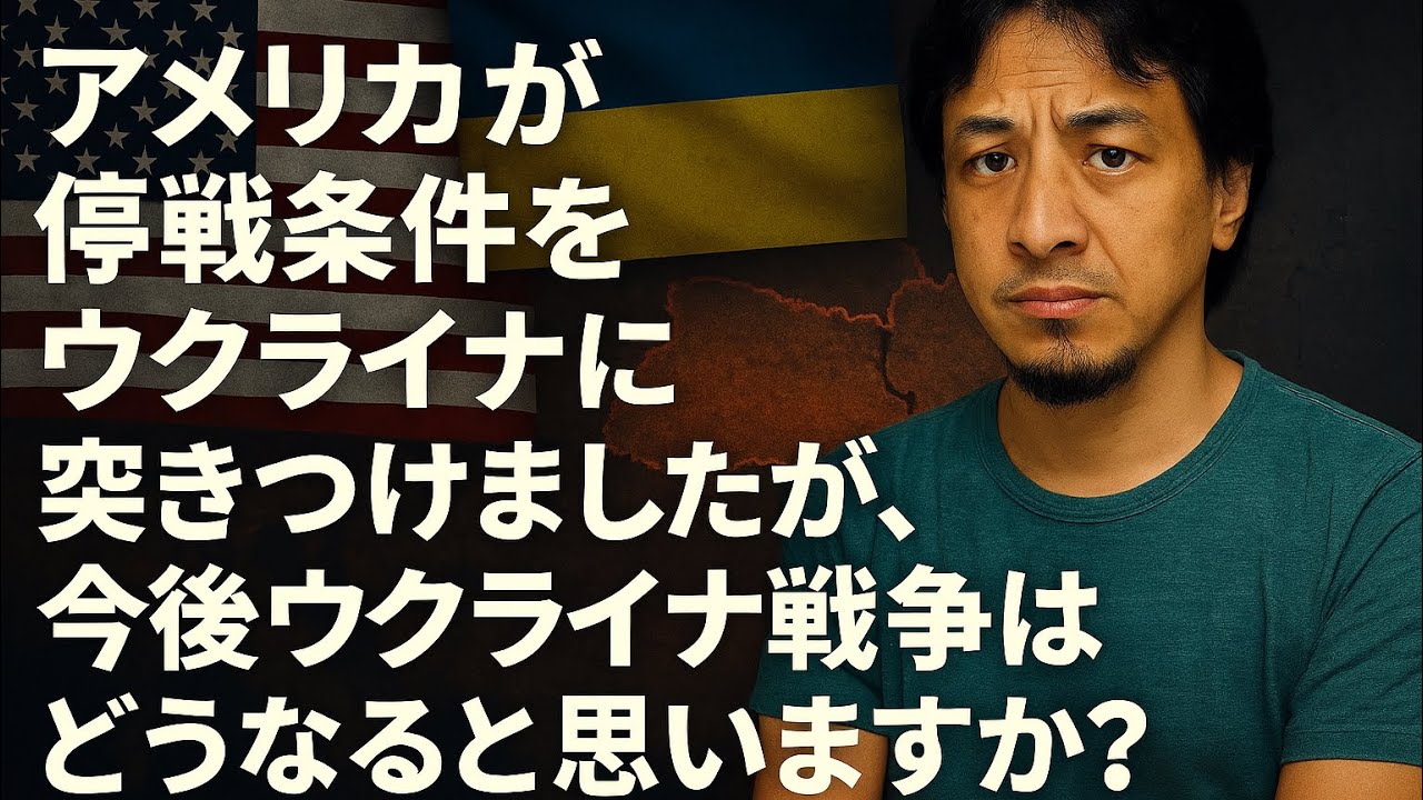 え、アメリカが停戦条件をウクライナにつけつけましたが、今後ウクライナ戦争はどうなると思いますか?えと、一応停戦条件は公表されてないはずで、ま、僕が知らないかもしれないですけど、ま、なんかその聞いてる限りでいくとウクライナとしては結構不利な条件なのでこれは飲めないよねっていう状態になってるので、なので、まあ飲まねんじゃねえかなっていう。