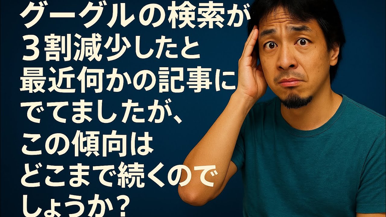 グーグルの検索が3割減少したと最近何かの記事にでてましたが、この傾向はどこまで続くのでしょうか?ジェミニにきくより、あえてあいまいに検索して、もっとも適した答えを選びたい時もあるんですけど、、