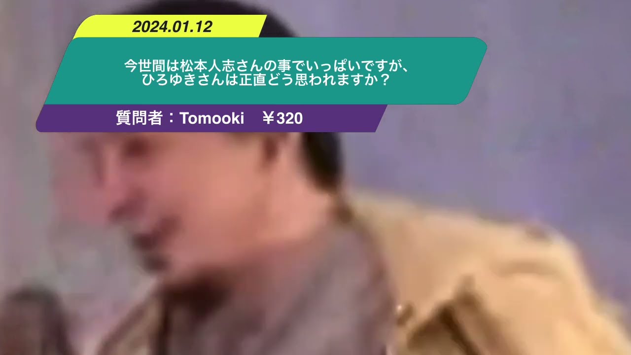 コメント忘れました!今世間は松本人志さんの事でいっぱいですが、ひろゆきさんは正直どう思われますか?