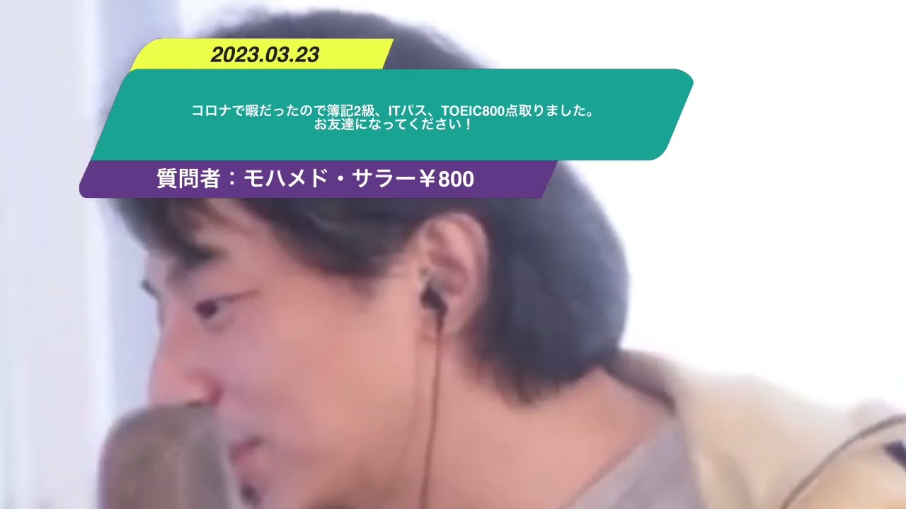 Kind: captionsLanguage: ja大学生ですコロナで暇だったので簿記2級ITパス遠いか800点取りましたおすごいまた暇でなんとなく始めた趣味がなぜか友達と希望する関係になって順調に進めますひろゆきさんがいじりやすい好きそうな人間だったなと思ったのでお友達になってください