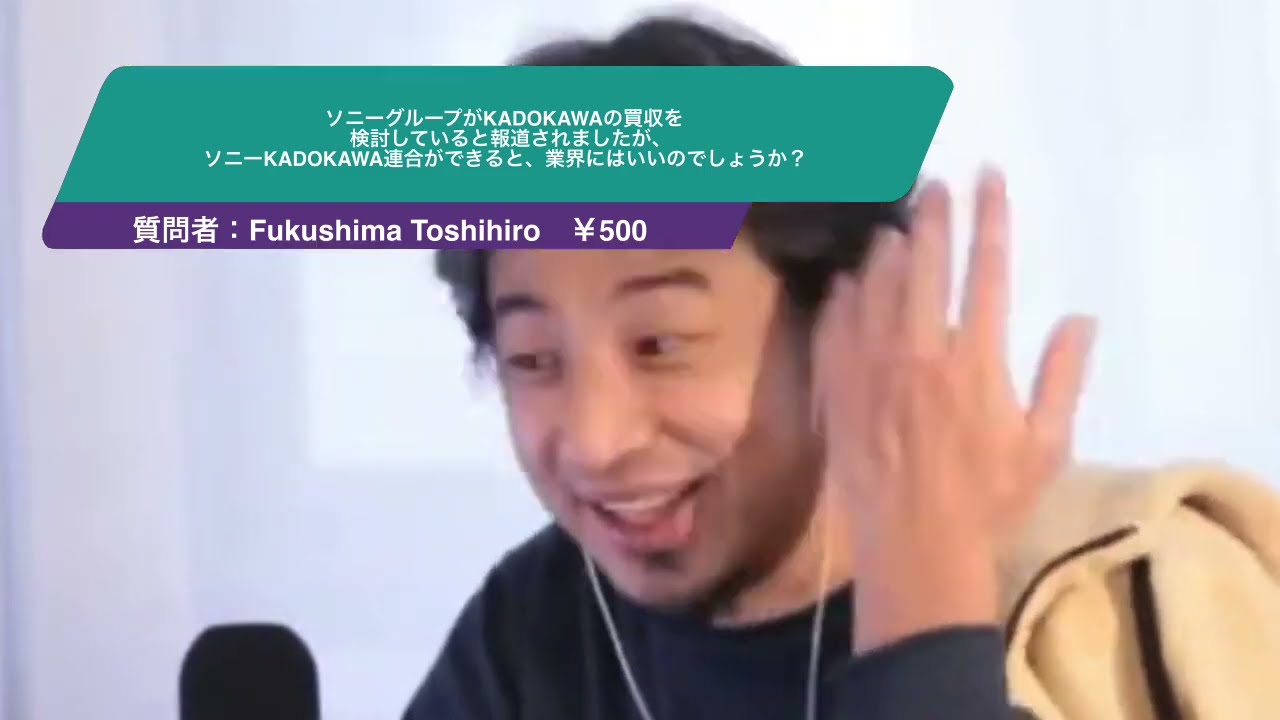 ソニーグループがKADOKAWAの買収を検討していると報道されましたが、ソニーKADOKAWA連合ができると、業界にはいいのでしょうか?、またニコニコはどうなるでしょうか?