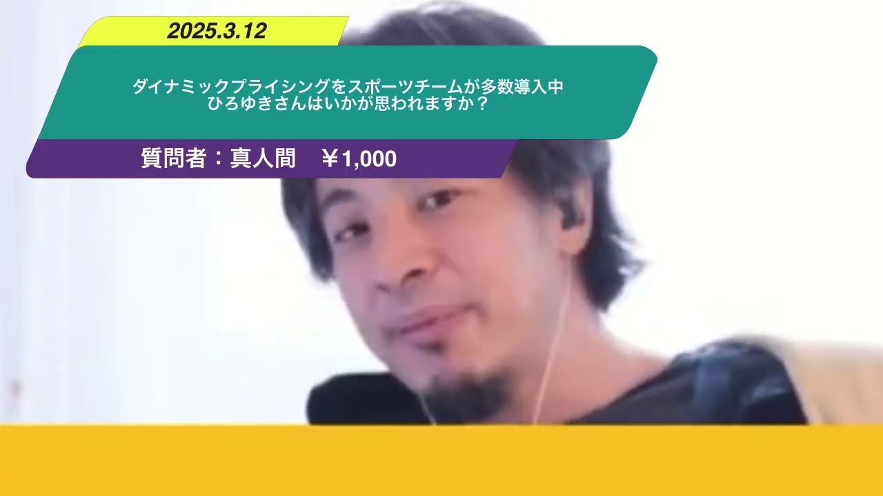 【ひろゆき】ダイナミックプライシングをスポーツチームが多数導入中。ひろゆきさんはいかが思われますか?ー ひろゆき切り抜き 20250312