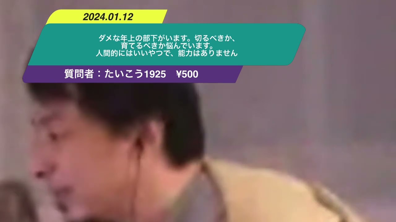 Kind: captionsLanguage: ja[音楽]えダメな年上の部がいますキからる悩んでます逃げてきない能力ありませんいいやだったら仲良くしてけばいいんじゃないですか別に育てる必要はなく仲良くするだけでいいと思います