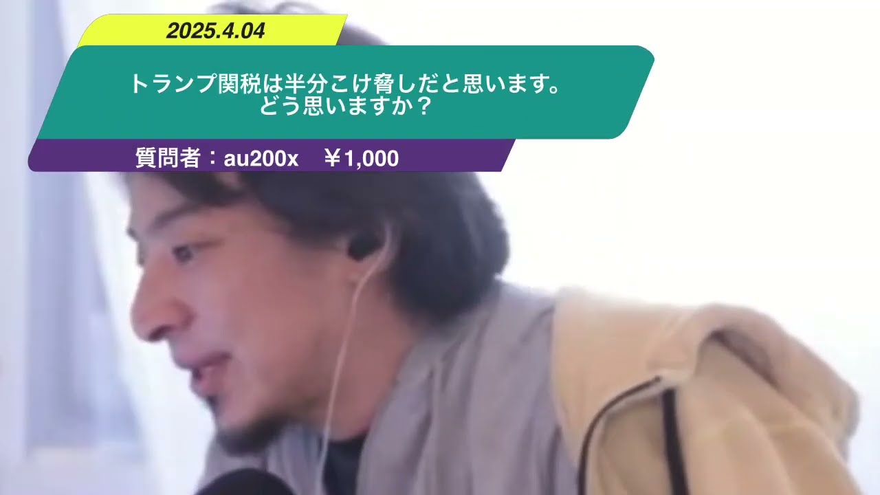トランプ関税は半分こけ脅しだと思います。彼はビジネスマンなので「最初にとんでもない要求を相手に突きつけて、相手から有利な条件を引き出して落とし所を決める」みたいな事を国単位でしているのではないかなと。だから良い条件を引き出した国からは、ある程度関税は緩和する気がします。彼は口が上手いので、後から関税緩和してコロコロ政策転換しても国民を言い包める気がしますが、どう思いますか?