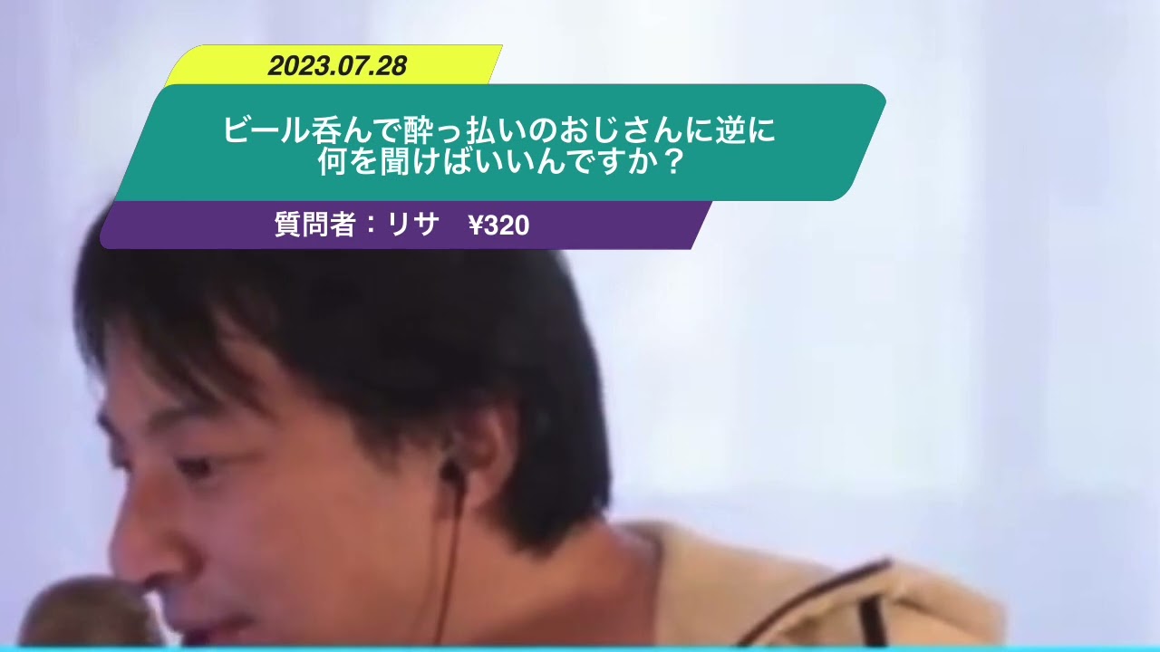Kind: captionsLanguage: jaビール飲んで酔っ払いのおじさんに逆に何を聞けばいい人生不幸にする方法と諦めてないですかね