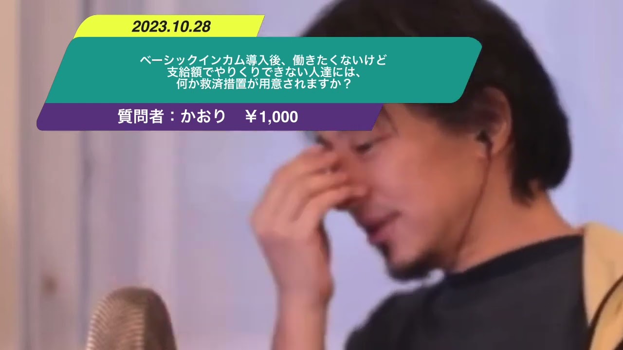 【ひろゆき】ベーシックインカム導入後、働きたくないけど支給額でやりくりできない人達には、何か救済措置が用意されますか?ー ひろゆき切り抜き 20231028