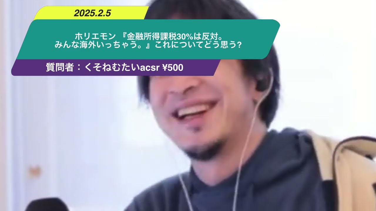 ホリエモン 『金融所得課税30%は反対。企業するひとのやる気を削いじゃうからダメ。みんな海外いっちゃう。』これについてどう思う?