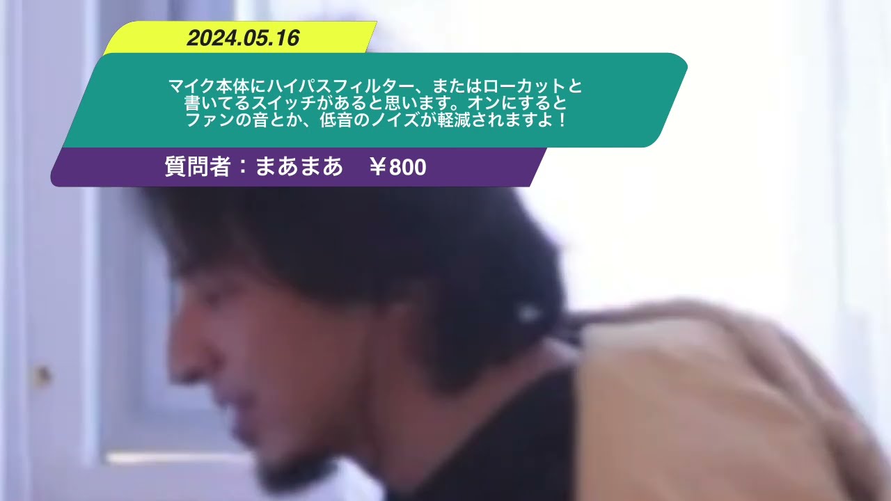 Kind: captionsLanguage: jaえマイク本体にハイパスフィルターまたはローカットと書いてあるスイッチが食べますルートみたいな協会あるともスロにするとファンのとか手のズが減されますよえっとねマイクのね自動設定にしちゃってるんですよねなんかめんどくせえと思ってあれ今でもあでも自動設定外してるかもしんないちょっと設定を変あちょっと自動設定オンこれで今自動設定オンにしましたこれで変わるかなかわお何か変わったファン消えましたわかんないね一応ねバイパスフィルターのスイッチでバイパスフィルターのスイッチは一応入ってるっぽいですよねあこれねバイパス外してますはい外しました今バイパスが外れていますあじゃハイパスかハイパスが外れてます違いが分かりませんよくわかんないからハイパス戻しますはいはいというわけで一応あのえっと自動設定のハイパスオンの状態になりましたけどうまくいってるのかどうか分かりませんはいすいませんJA