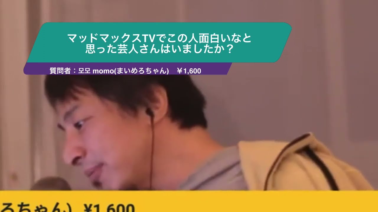 マッドマックスTVでいろんな芸人さんたちとディベート対決していたり、よなよなひろゆきでコラボしていましたが、この人面白いなと思った芸人さんはいましたか?個人的にとろサーモンの久保田さんの回が好きでした!あと機会があれば霜降り明星の粗品さんとの共演も見てみたいです