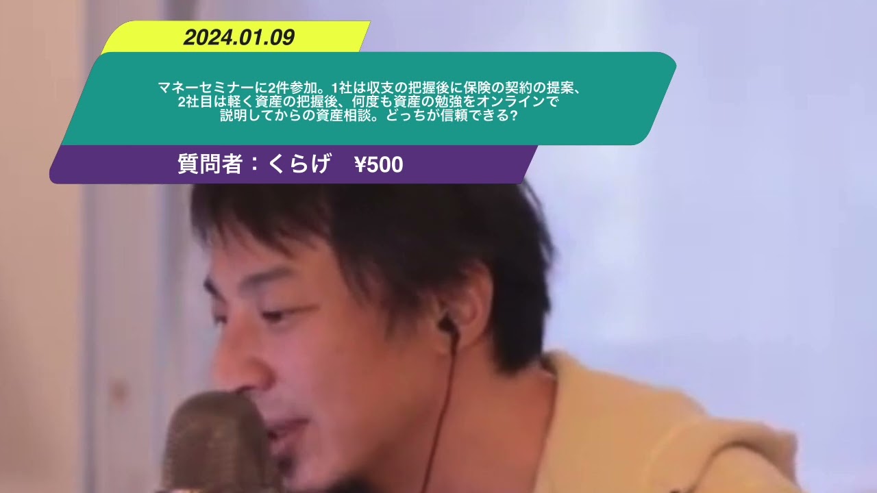 年収300万弱、マネーセミナーに2件参加しました。1社はしっかり収支の把握後に保険の契約の提案 2社目は軽く資産の把握後、何度も資産の勉強をオンラインで説明してからの資産相談。どっちが信頼できますか?