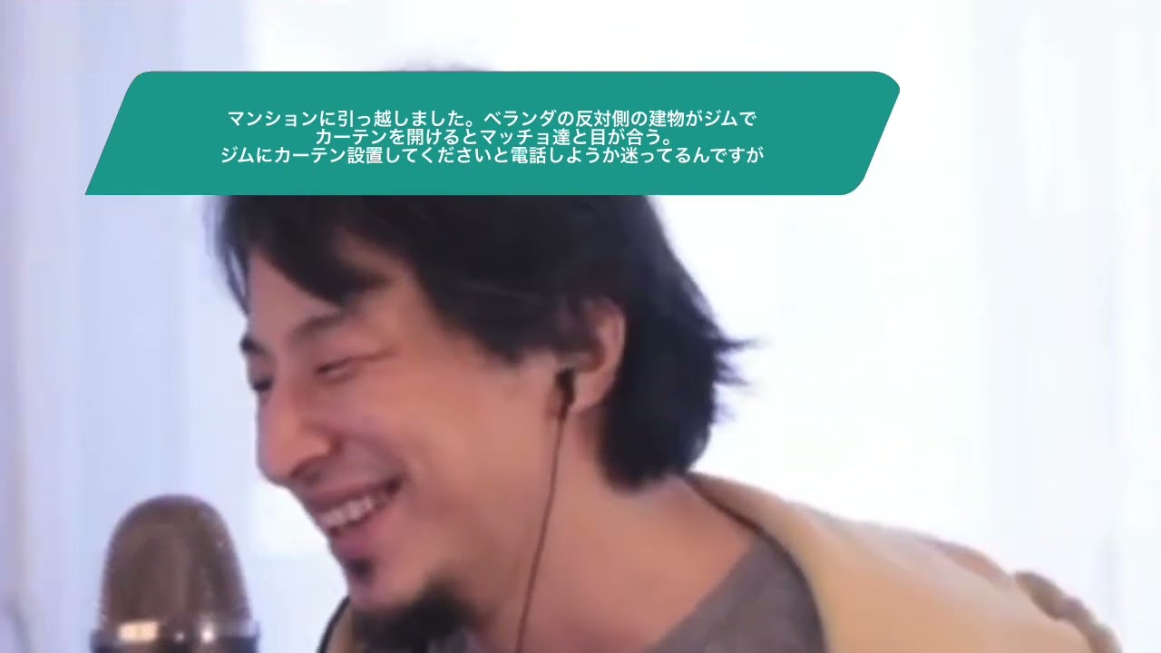 最近、10階建マンションの2階に引っ越しました。間取りなど全て自分の理想通りなのですが唯一、ベランダの反対側の建物がジムでカーテンを開けるとマッチョ達と目が合い、部屋が丸見え状態になるのが辛いです。ジムにカーテン設置してくださいと電話しようか迷ってるんですが、ひろゆきさんならどうしますか。