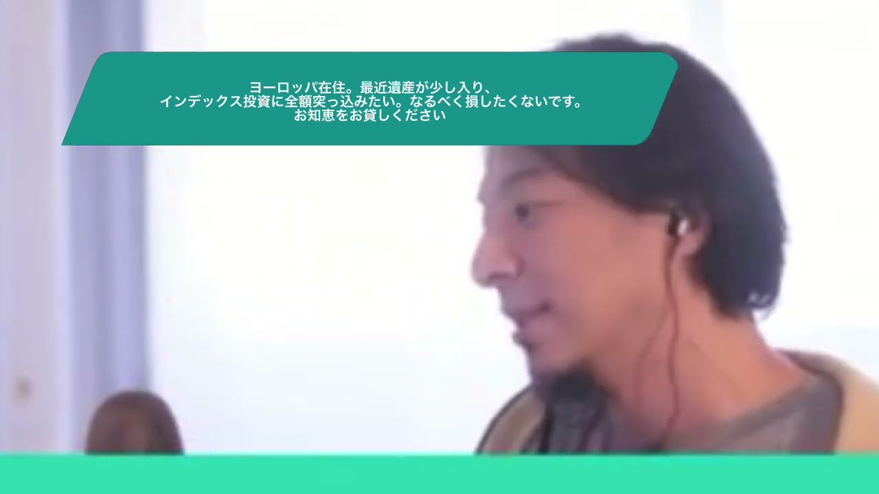 ヨーロッパ在住です。最近遺産が少し入ったので、こちらでインデックス投資に全額突っ込みたいのですが、今円安なので日本から送金するのに躊躇してしまいます。ひろゆきさんなら日本にお金を置いておくか、送金してインデックス投資に入れてしまうかどうされますか? なるべく損したくないです。お知恵をお貸しください。