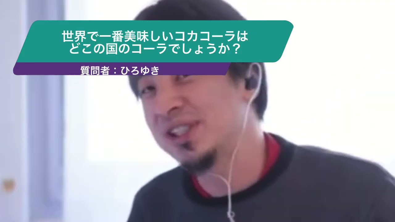 じゃあ、あの、世界で1番美味しいコーラはどこの国のカコーラでしょうか?ま、その、えっと、ペプシとか、ま、いろんな銘柄置いといて、コカコーラも実は国によって味が違うんですよ。