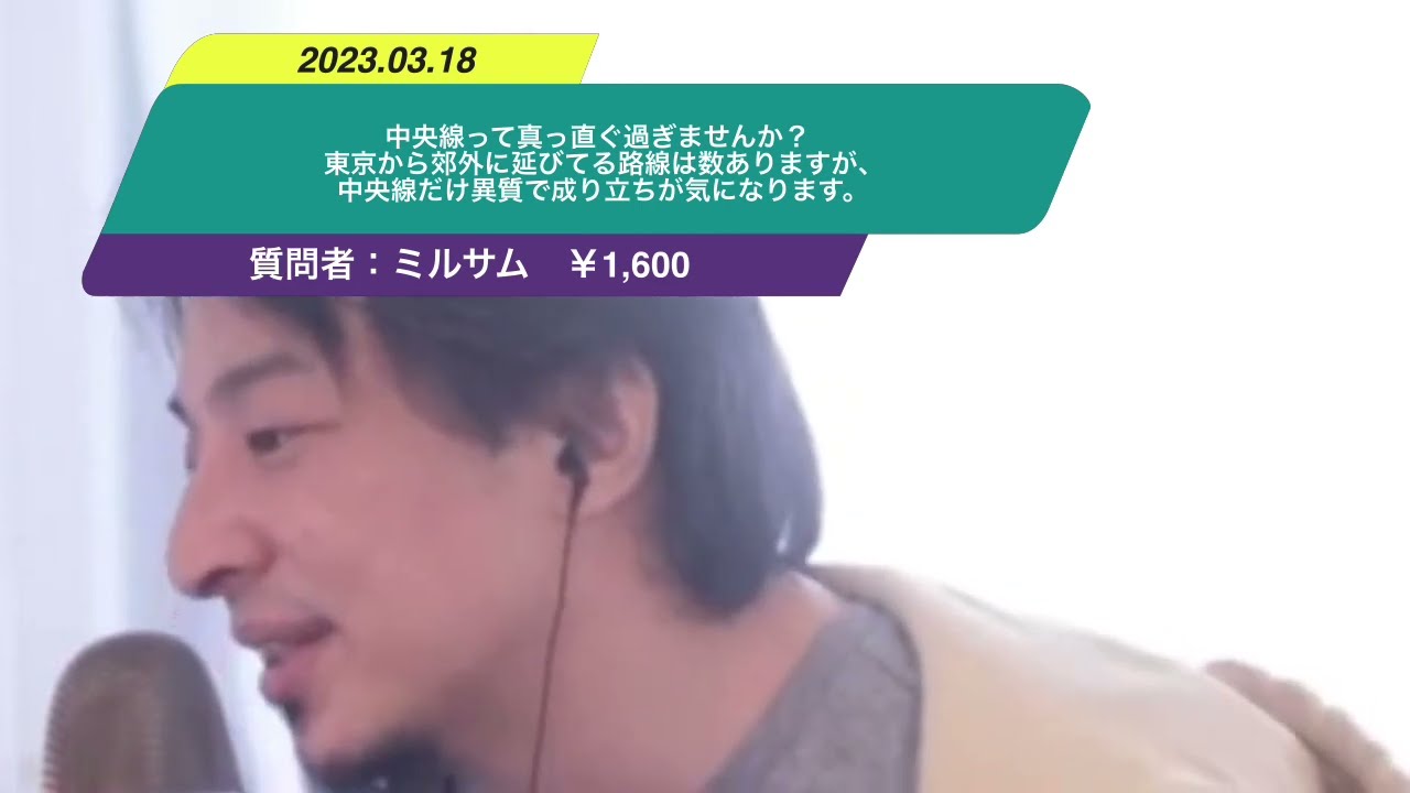 中央線って真っ直ぐ過ぎませんか?東京から郊外に延びてる路線は数ありますが、中央線だけ異質で成り立ちが気になります。 当時の資料は残ってないそうですが、あまりにも東西に引かれてて、軍の権力で適当に地上げしたんじゃないかと思ってます。ひろゆきさんはどう思いますか?