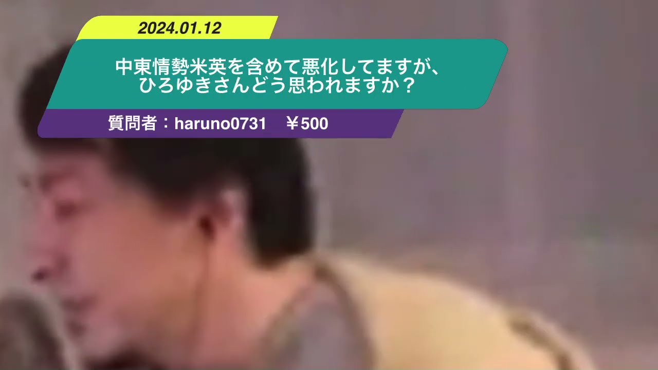 Kind: captionsLanguage: jaえ中東情勢米を含めて悪化していますが近い将来北朝鮮やロシアの家がテロスが入手して勝ち組のイスラエルヨクパトかに作されて物使い特攻しねないだと思うんですが今の北朝鮮やロシアは1万ドルバ売ってくれそうなので怖いですひさんどうもありますかえっとま売るかもしんないですけど別にニューヨークとかパリとかでテロをすることで中東はそのなんかじゃイスラエルがガザ地区のなんかあのその権利を手に入れれるかっていうとそうでもないのでなので別にそのニューヨークとかパリを狙うというメリットがないですよねいそのあのロシアがじゃあウクライナを何とかしたいっていうのでそのなんかウクライナの寄付に対して核爆な音数みたいなのやるかもしれないですけどそのフランスパリに核爆弾が爆発したとしてどこかの国が特定の国がメリットを得るという構造にはなってないのでなのでなんか大都市だから危険っていう感じではないんじゃないかなと思いますけど