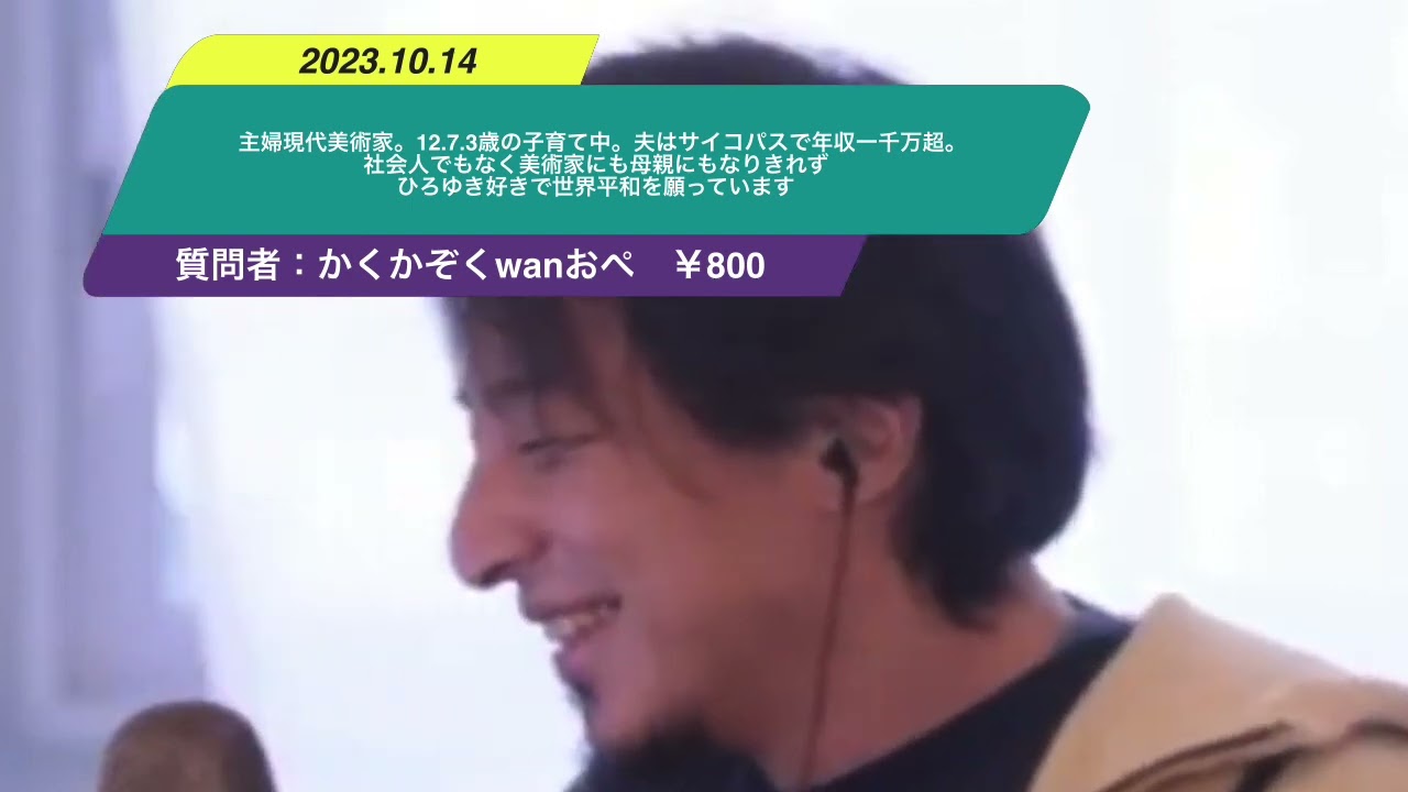 【ひろゆき】主婦現代美術家。2.7.3歳の子育て中。夫はサイコパスで年収一千万超。社会人でもなく美術家にも母親にもなりきれずひろゆき好きで世界平和を願っていますー ひろゆき切り抜き 20231014