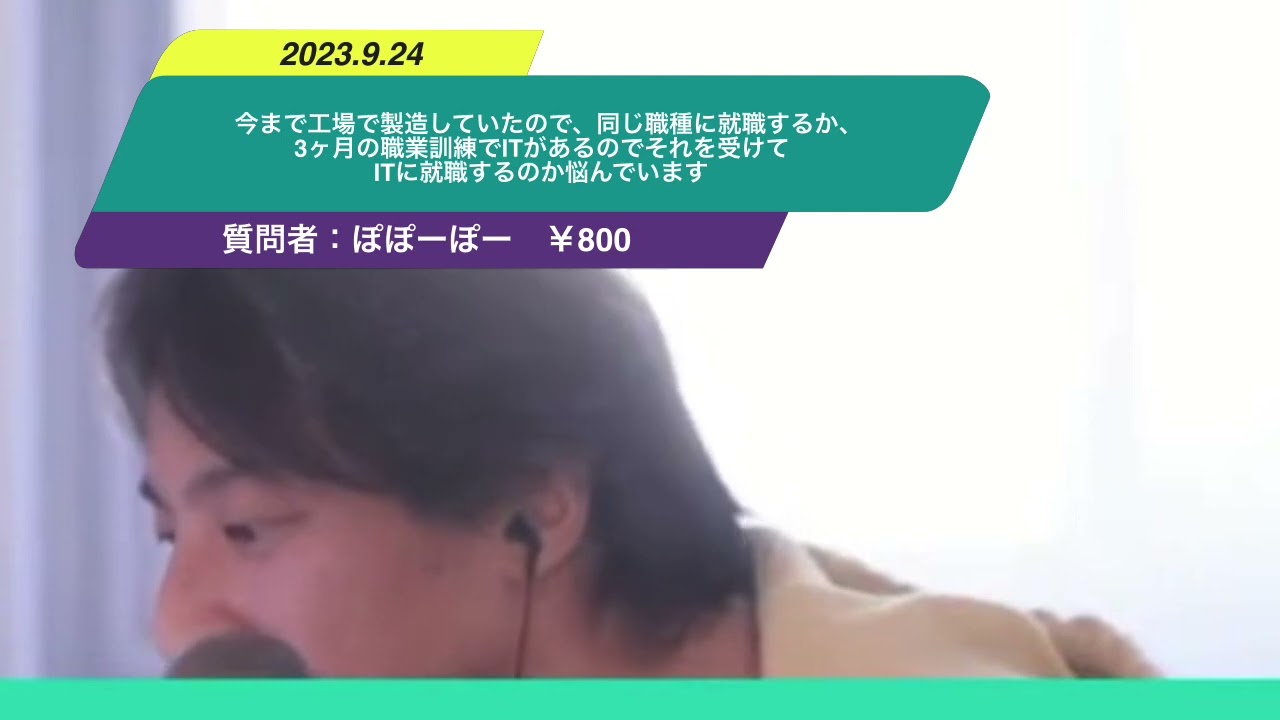 【ひろゆき】今まで工場で製造していたので、同じ職種に就職するか、3ヶ月の職業訓練でITがあるのでそれを受けてITに就職するのか悩んでいます。ー ひろゆき切り抜き 20230924
