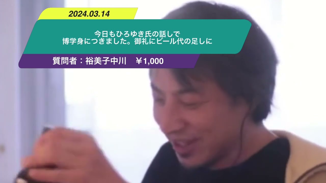 今日もひろゆき氏の話しで博学身につきました。御礼にビール代の足しに