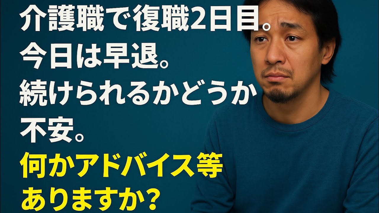 介護職で復職2日目です。今日は早退してきてしまいました。続けられるかどうか不安です。まだ復職2日目ですが、何かアドバイス等ありますか?元々持ってるうつ病で動悸が強く早退しました。
