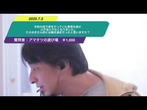 令和の虎で虎をやっていた青笹社長が心不全んでなくなりました。ひろゆきさん的には働き過ぎだったと思いますか?