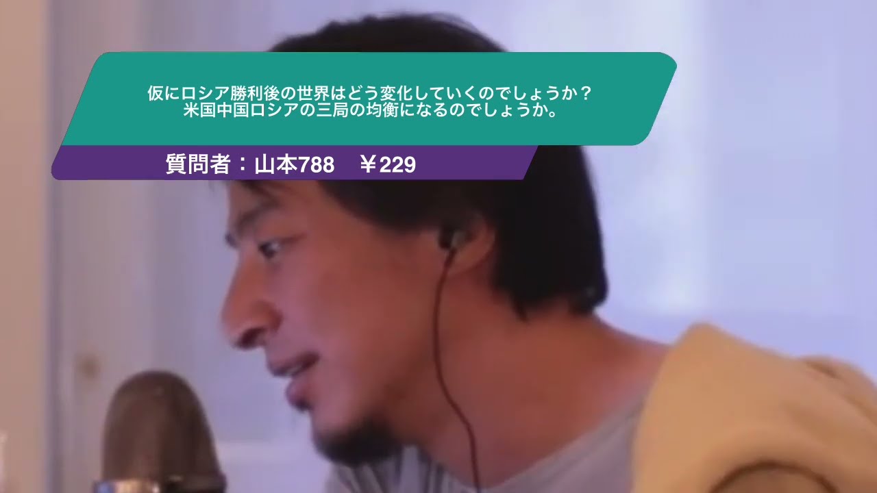仮にロシア勝利後の世界はどう変化していくのでしょうか?米国中国ロシアの三局の均衡になるのでしょうか。