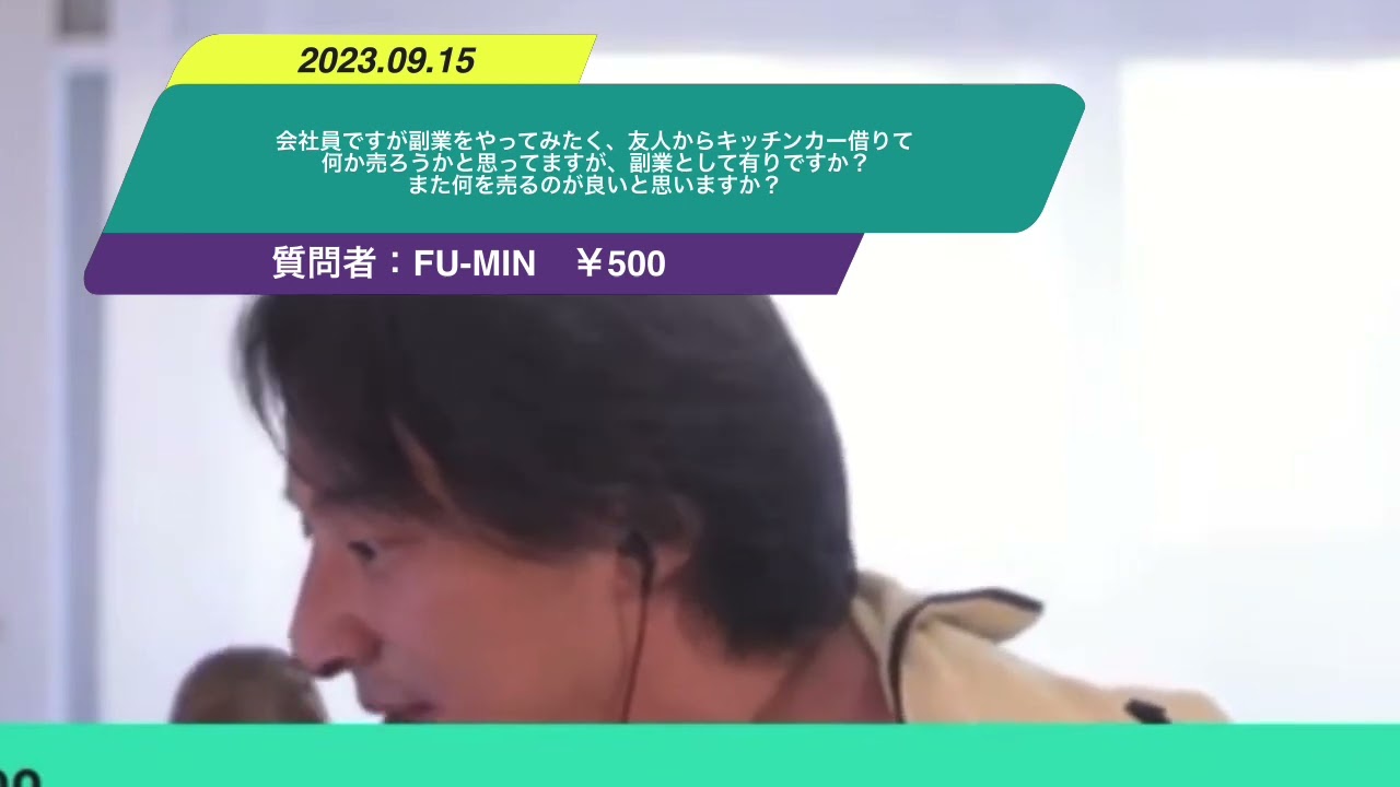 Kind: captionsLanguage: ja会社員ですが副業やってみたくて友人からキッチンカーを借りて何か売ろうかと思ってますが不況としたいですかまた何か売るのが良いと思いますかちなみ最近までいましたと思ってます副業なら好きにやればいいんじゃないかなと思います副業って別れるが趣味儲けるが目的じゃなくて面白いが目的でも全然いいと思うのでなのであのやりたいんだったらとっととやればいいんじゃないかなと思いますそろそろ30分ぐらいで終わらなきゃいけないのでちょっとあのなんかバタバタとスパチャを消化するモードにありますはい
