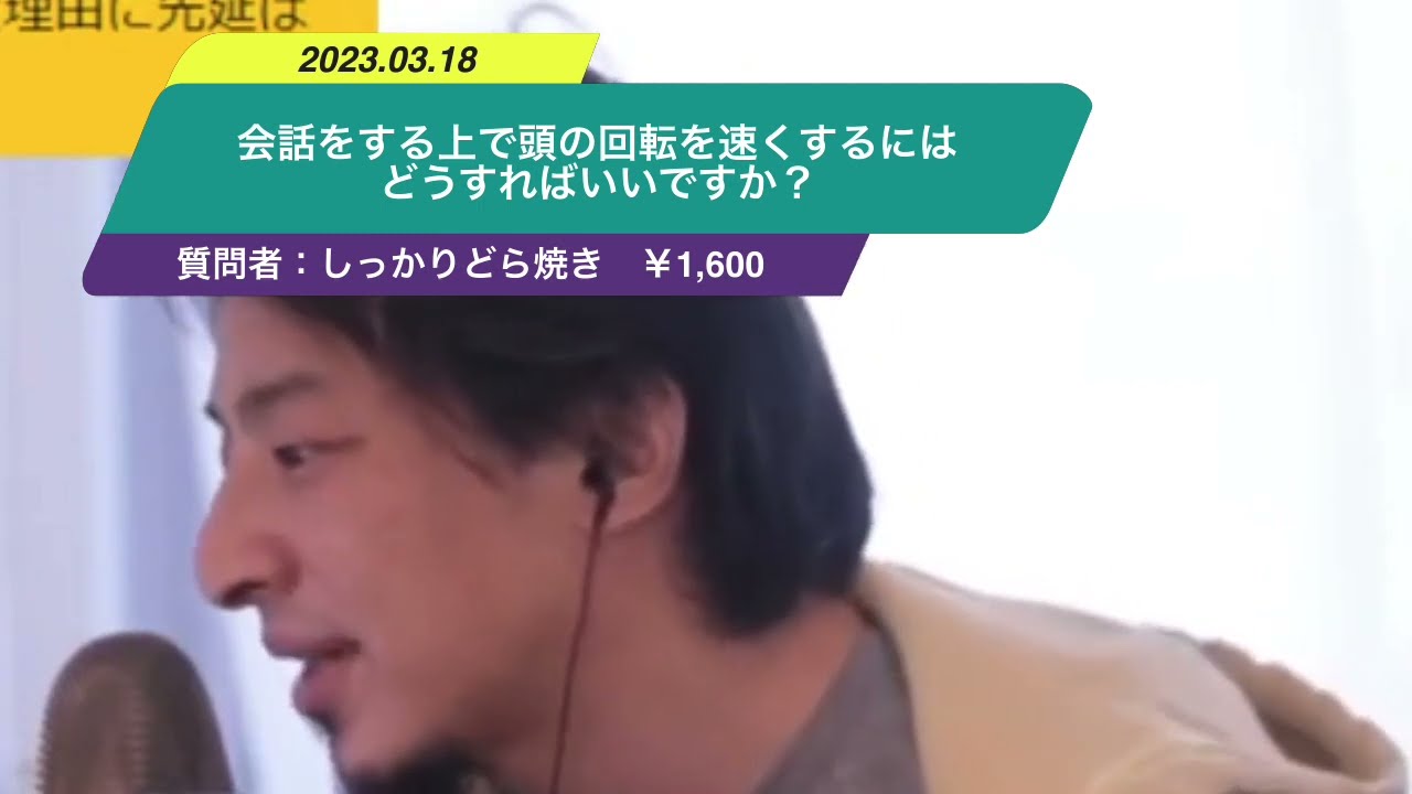 Kind: captionsLanguage: jaえ会話をする上で頭の回転を早くするにはどうすればいいですか春から大学生で3年生の先輩から就活の話を聞いたのですが想定してないような中小的で難しい質問されるらしくこれから万全都大学生をやっていってもそんなない質問に対応できる気がしません先の技術はなく根本的に少しでも頭の回転早くできるようになりたいので1年生のうちから読書なができるようなことやってきたいと考えています一郎慶王文系あの多分生まれつきであんまりそのそのリアクションでそれないに回転数が高いとこが言えるっていうのって多分その性格とか体質的なものな気がするんですよねあのま僕そのドアゴっていう会社でニコニコ動画っていうのやってたんですけどでそこで割と表んでて喋ることが多かったんですけどでま僕と夏野さんが割とあの表に出て喋ることが多かったんですけどで僕とか夏野さんって言われた瞬間に返すっていう瞬発力の能力は高いんですよでただそのドアゴの創業者の川上さんって人は瞬発力超低いんすよあの考えた結果あのいい考えとか面白いアイデアを出すのはすごい得なんですけど目の前で話した時に面白いの出すのはすげえ苦手な人なんですよなので別にじゃあどっちが優秀かって言とそのえっとドア号の創業者なんですけど角川ドアゴっていう形の会社になってで今角川っていうあのまあの漫画だったりアニメだったり小説だったり出てる出版社のヒット株主になってんのかなで一応そこの代表取締り役をやめて会長かなんかなので割とその社会的には全然上の人なんですけどたじゃリアルタイムで話した時に面白いこと言えるかっていうと別に言えないんですよね川さんはていうのもあったりするのであの人それぞれなのでその頭の回転でゅそのそばで切り抜けられるっていう能力がないのであればじゃあ資格を持ってますとかで例えばその喋りめちゃめちゃうまいですっていうのとあの僕喋りとか苦手なんですけど司法試験受かりましたっていうのであればあ司法試験受かってる人の方が優秀だよねって分かりやすいじゃないですかま別にそれが少子現だと難しいのであれば行政諸子とか別に税理士とかでもいいんですけどなのでその便利士でもいいんですけどなのでその自分がそのリアルタイム能力が高いというわけではないのであればそのコツコツと積み上げて資格試験を取るとかそのリアルタイム性じゃなくてコツコツ積み上げる能力が得意ですよっていう方をちゃんと作ってでそれを説明できるようになってればあの面接とかすごい苦手なんですけどあのコツコツやるのは得意ですみたいな感じで資格を取ればいいんじゃないかなと思いますけどもDET