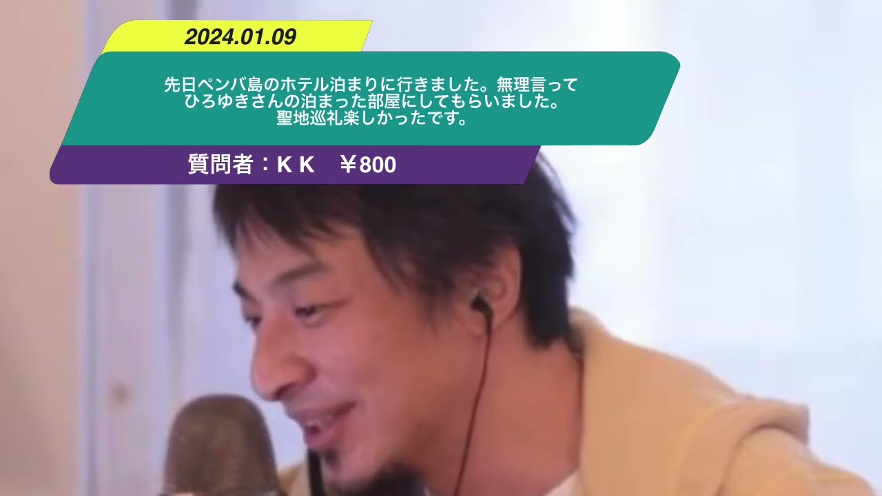 【ひろゆき】先日ペンバ島のホテル泊まりに行きました。無理言ってひろゆきさんの泊まった部屋にしてもらいました。聖地巡礼楽しかったです。ー ひろゆき切り抜き 20240109