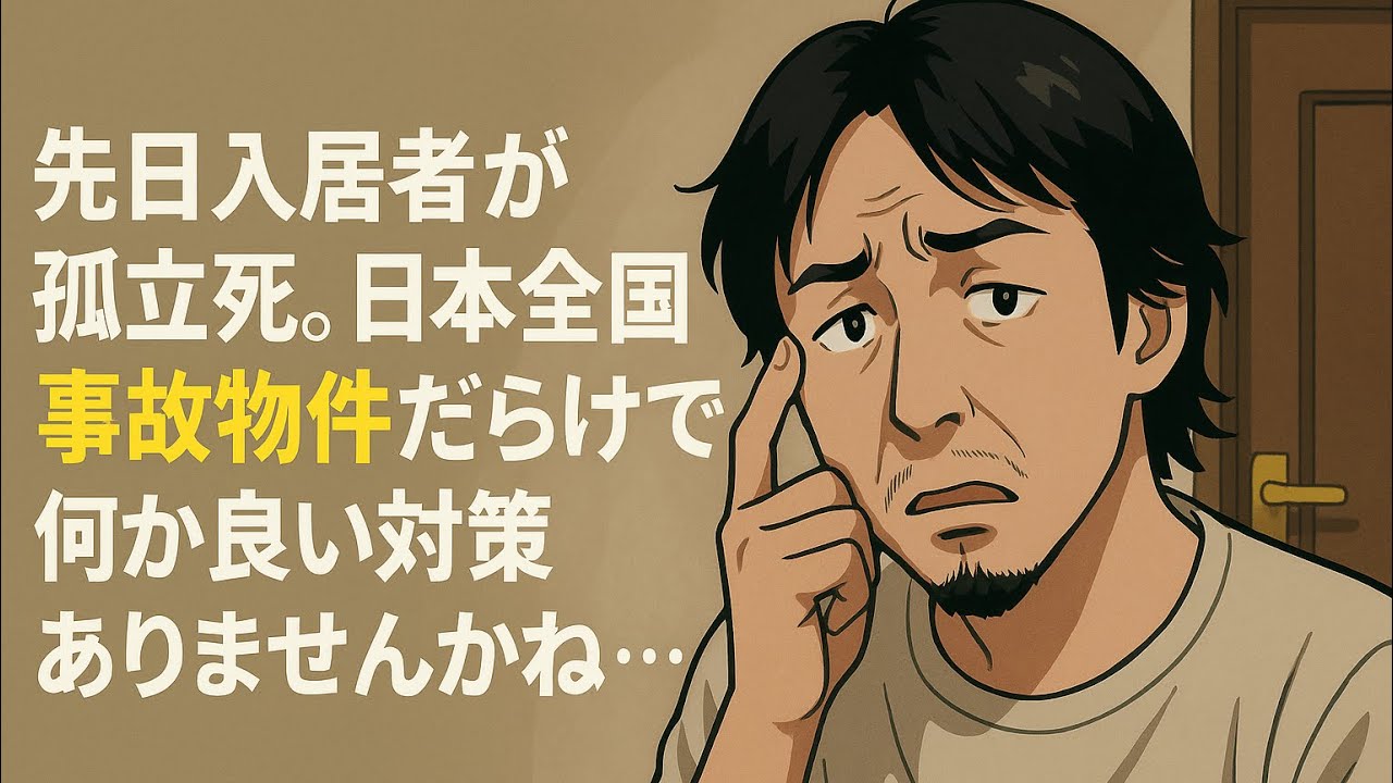 不動産管理をしています。先日入居者孤立死で大家負担100万超え、しかもどんなに綺麗にしても告知義務アリで家賃も値下げ必至。昨年死後1週間以上発見遅れた孤立死年二万件だそうで、日本全国事故物件だらけです何か良い対策ありませんかね…