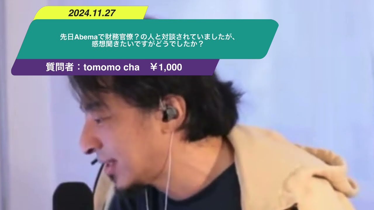 ひろゆきさん、先日Abemaで財務官僚?の人と対談されていましたが、感想聞きたいですがどうでしたか?人は悪くなさそうでしたが、傍から見てて、こんな人達ばかりが中央にいたらそりゃダメになるよな、って思いながら見てました。