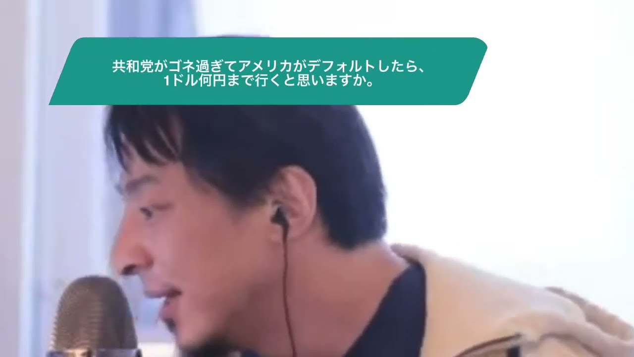 Kind: captionsLanguage: jaえ多分おそらく絶対ないと思いますが共和党が5年過ぎてアメリカがデフォルトしたら1ドル何円まで行くと思いますかえっとあのアメリカのその国家予算を共和党が反対して通らないっていうパターンを言ってるんだと思うんですけど確かオバマ大統領の時代に1回そのあの国家予算が通らなくてなんか消防所とか自然公園とかの人の給料が出ないみたいなのが1回あったと思うんすよねなのあの国家予算が通らないっていうのとデフォルトは全然違う話なんですよ単純にあの国家予算が通らないのであの公務員の給料が出ないっていうのはあるんですけどただそれのデフォルトというのはそのアメリカドルの通貨としての価値がなくなるって話なのでこれ全然違うです